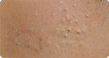7、萎缩型痤疮:丘疹或脓疱性痤疮破坏腺体而形成凹坑状萎缩性瘢痕者,称萎缩型痤疮。