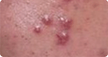 3、丘疹型痤疮:痤疮炎症可继续发展扩大并深入,表现为炎性丘疹和黑头粉刺者称丘疹型痤疮。