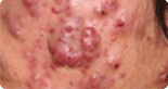 8、聚合性痤疮:数个痤疮结节在深部聚集融合,有红肿颜色青紫,称为融合性痤疮或聚合型痤疮。